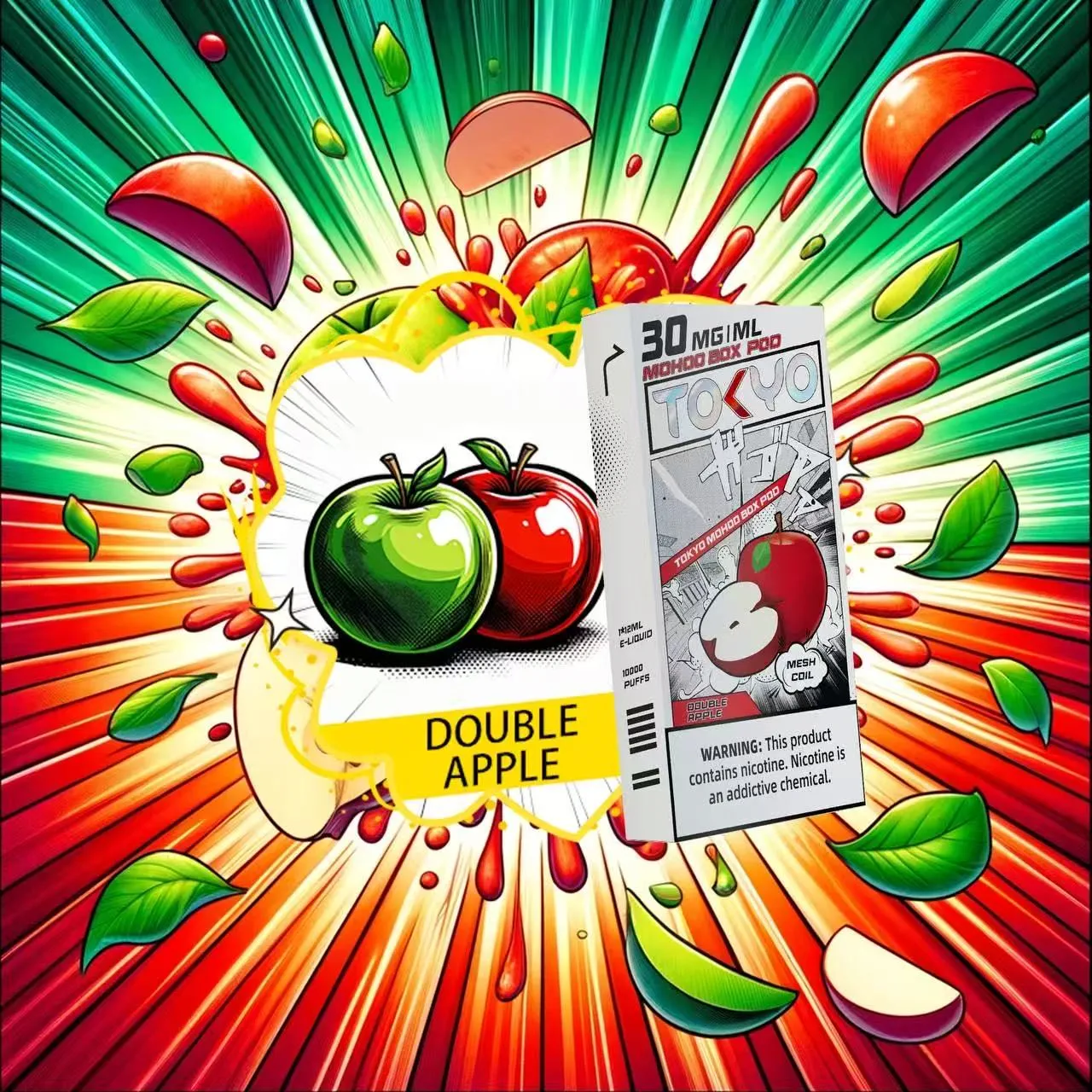 蘋果口味東京魔盒電子煙彈,還原新鮮蘋果的清甜多汁,帶來如現摘果實般的純淨果香體驗。